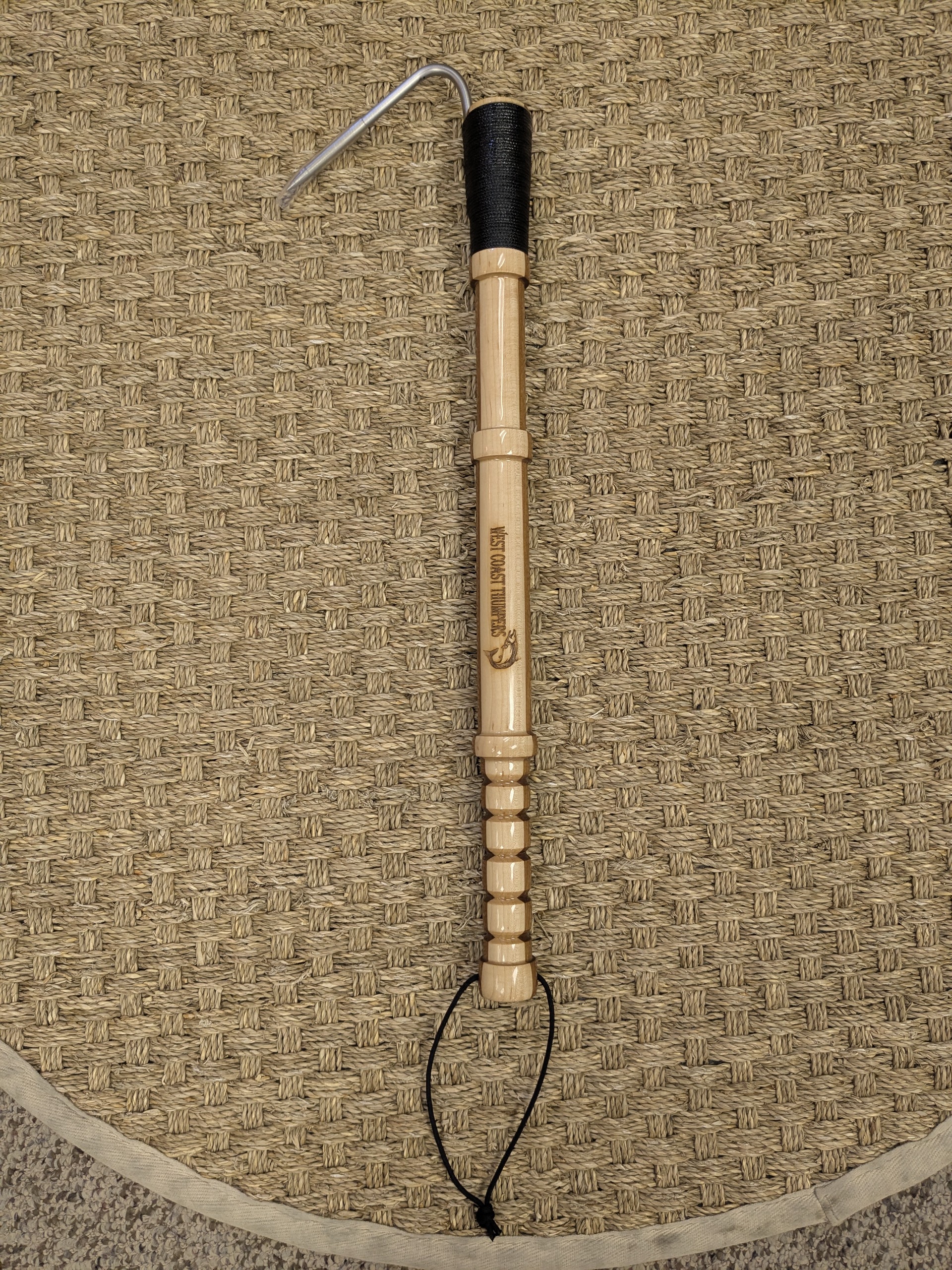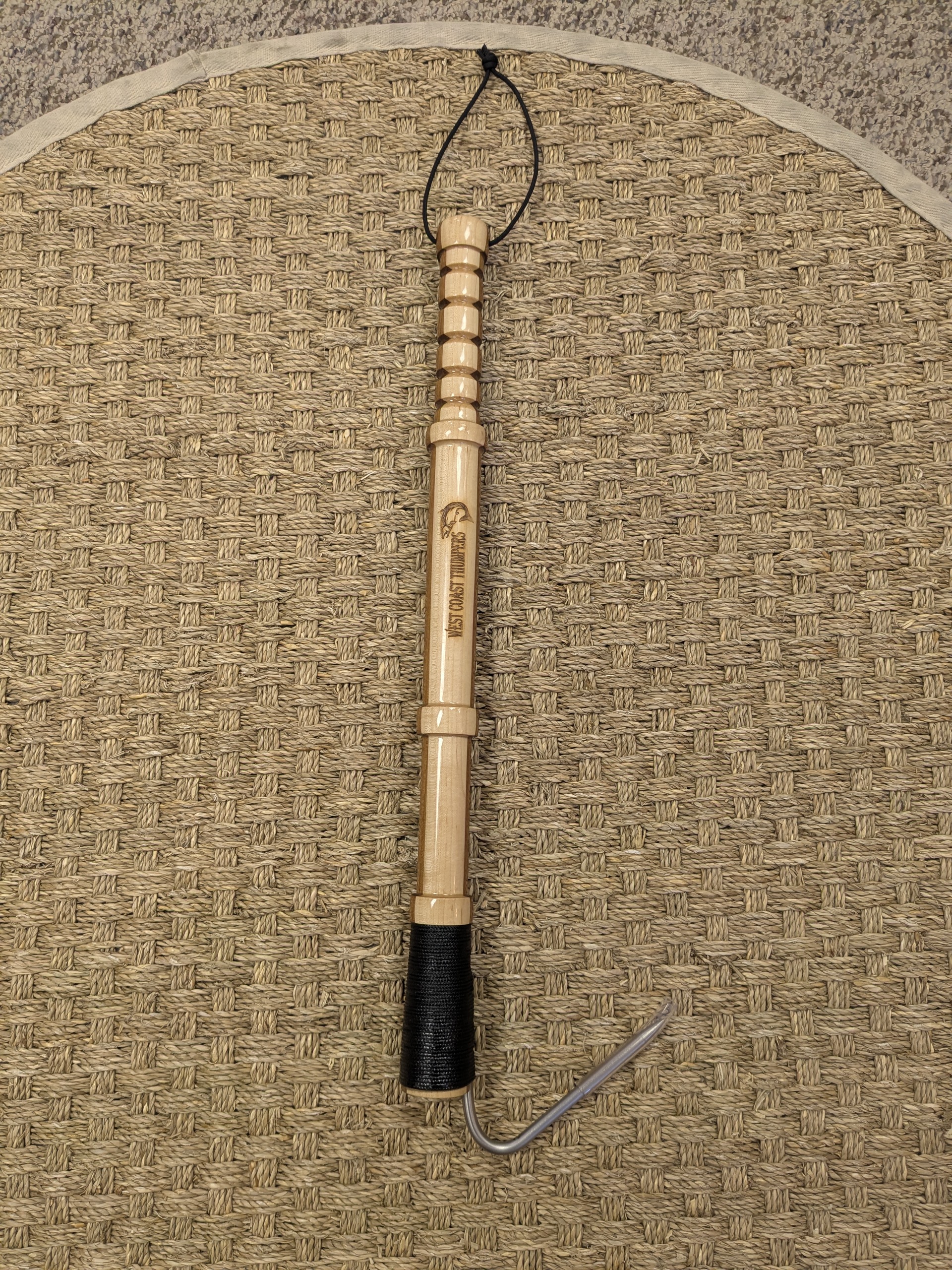 Made of beautiful hardwood with marine grade stainless steel epoxied in place with UV resistant waterproof epoxy. Entire gaff is also coated in epoxy to protect from elements.