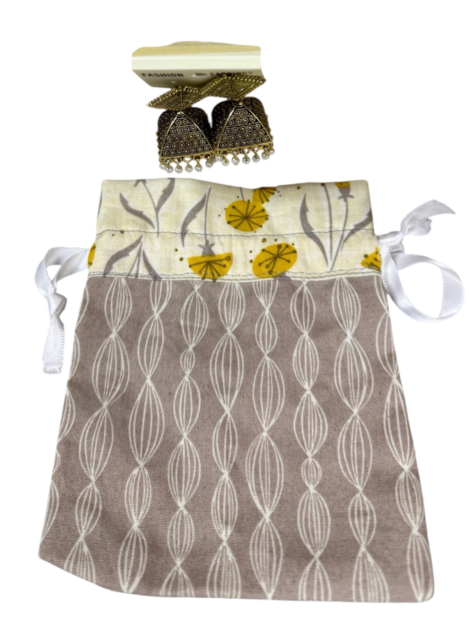 | Ornate Indian Earings in Costume Gold – Ornate and whimsical Indian Earings in Costume Gold in quilted pouch