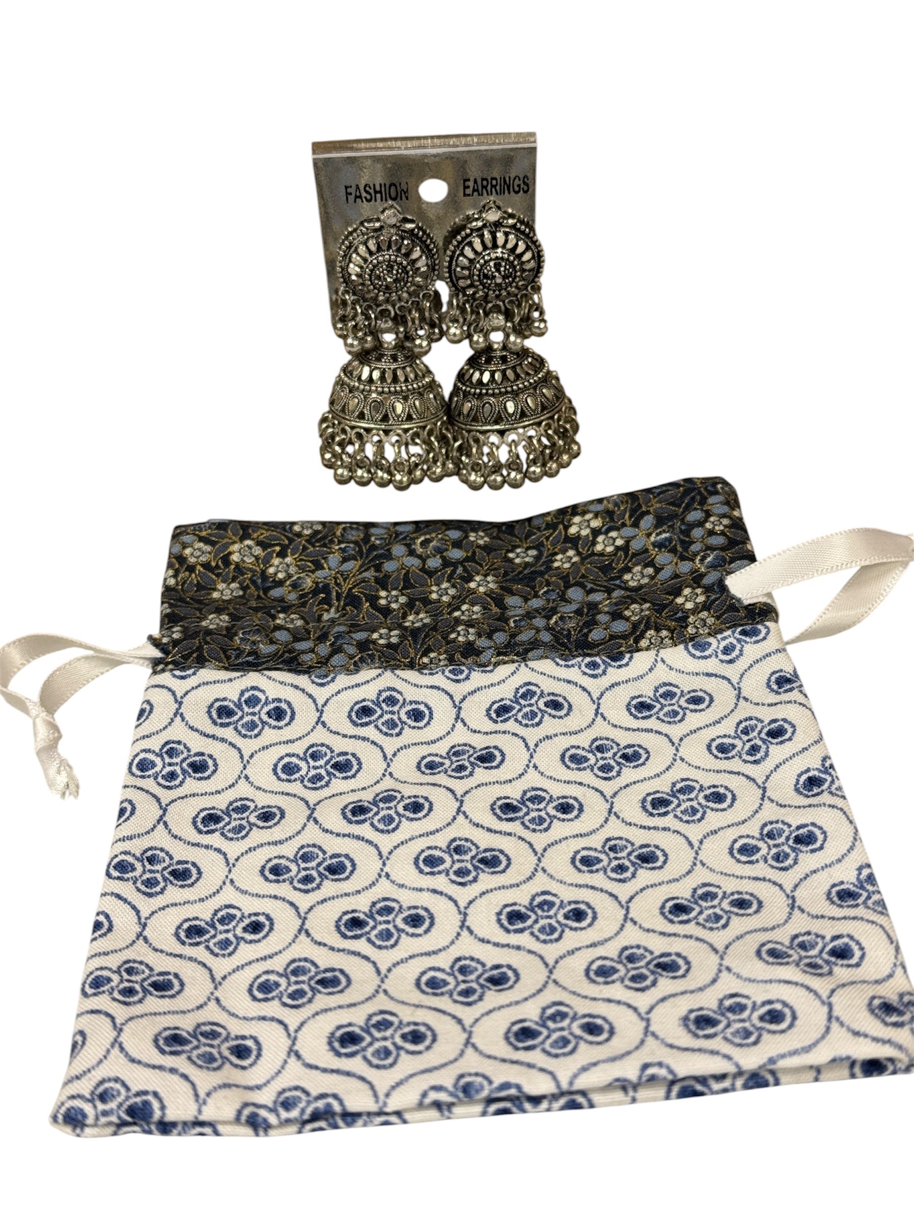| Ornate Indian Earings in Costume Silver – Ornate Indian Earings in Costume Silver in quilted pouch