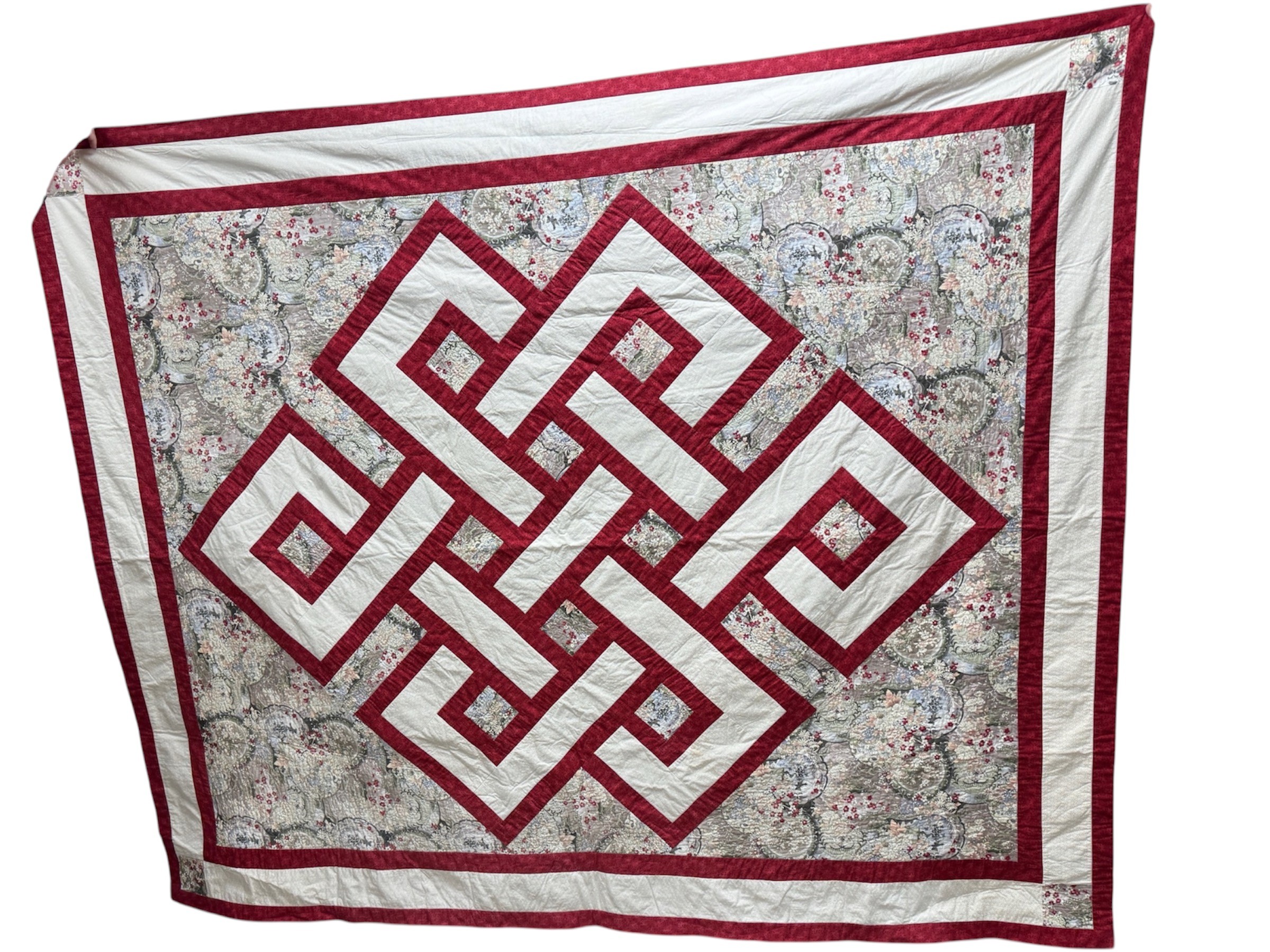 | Queen Size Quilt – Framed in burnt red and soft cream, this queen‑size Celtic forest quilt brings a warm, calming glow to any space.