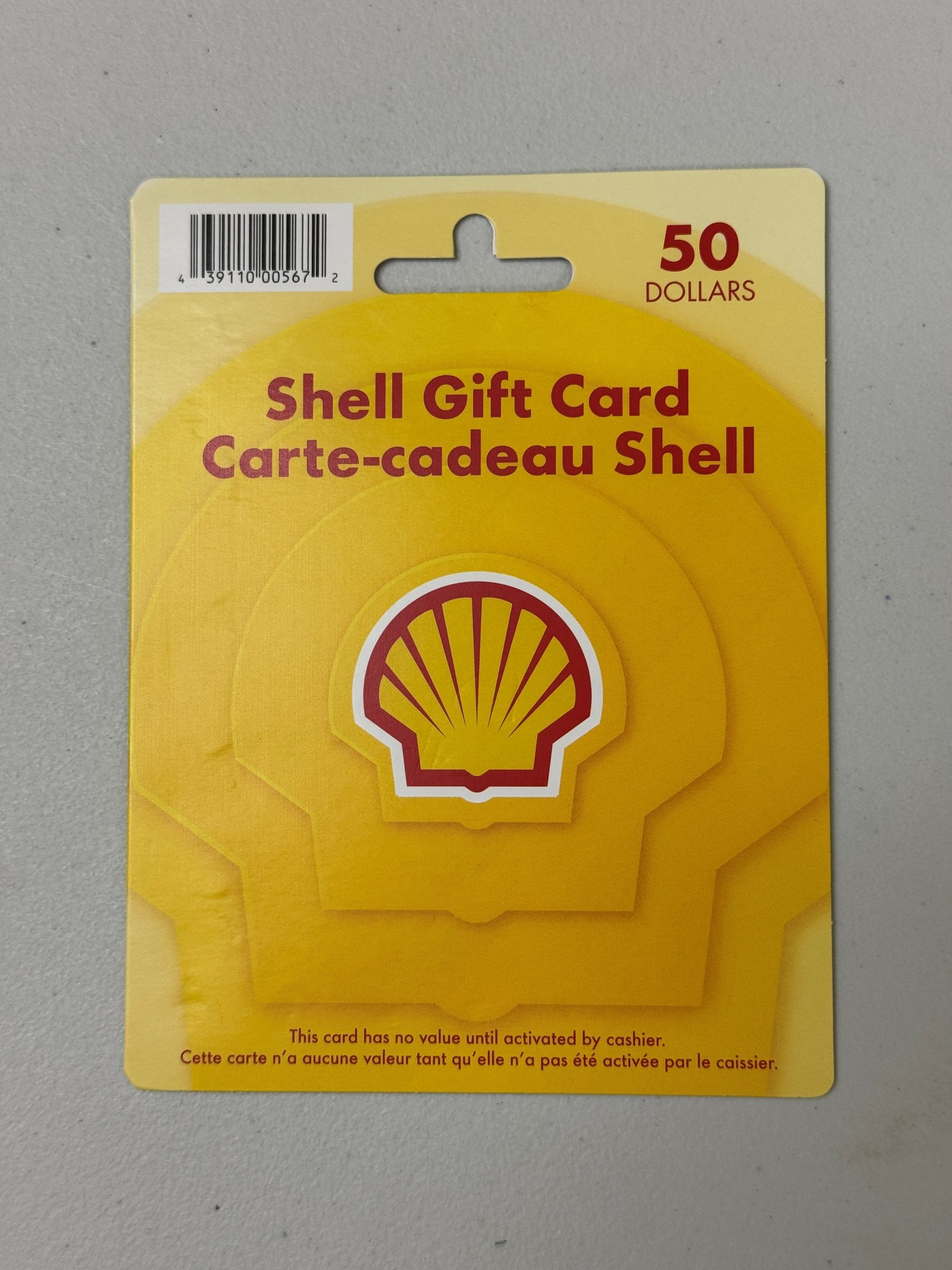 | One $50 gas card for use at any SHELL Station, no expiry. |