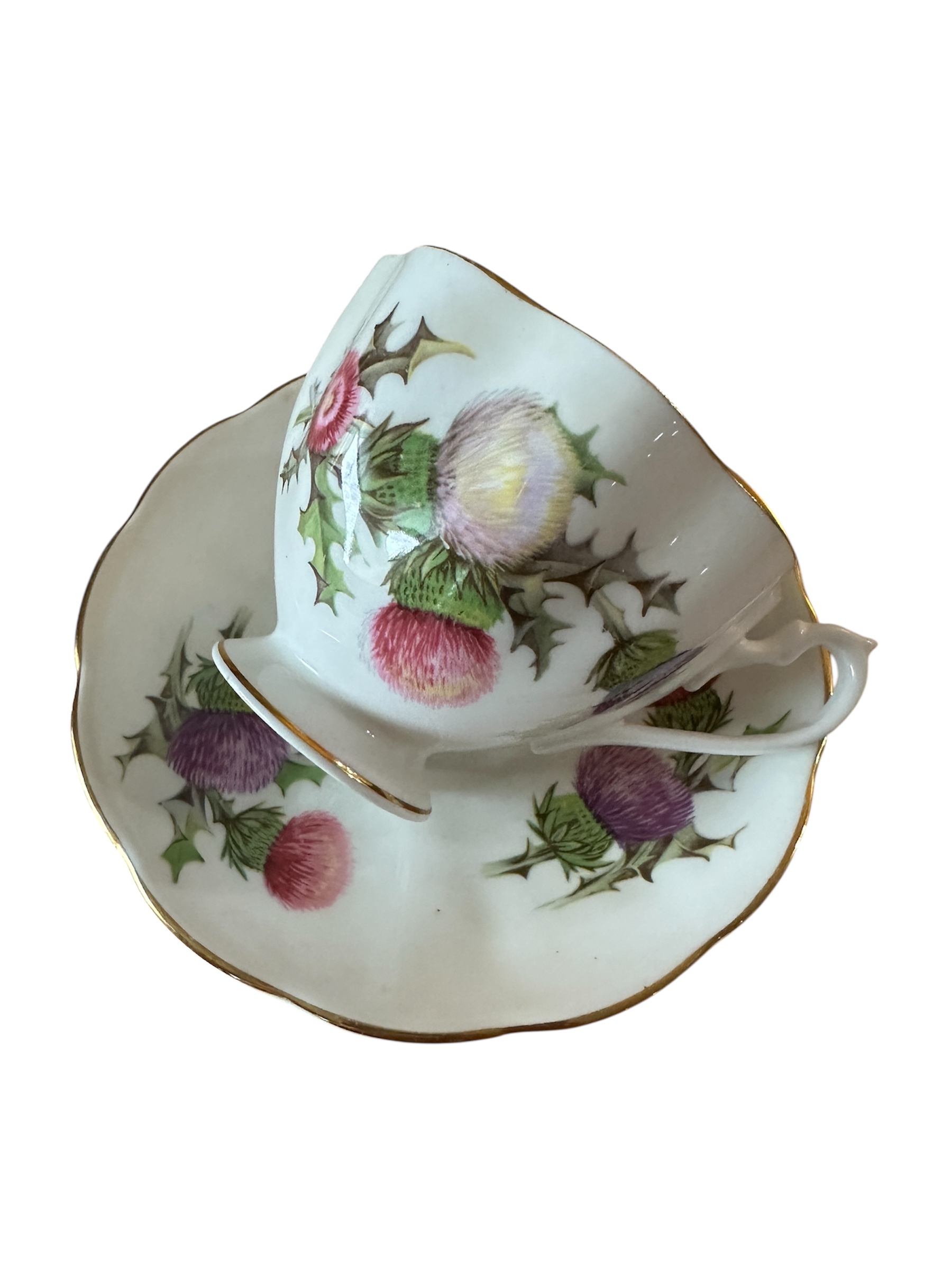 | Thistle Tea-cup – Queen Anne 1950’s “Dundee Thistle” pattern, white porcelain