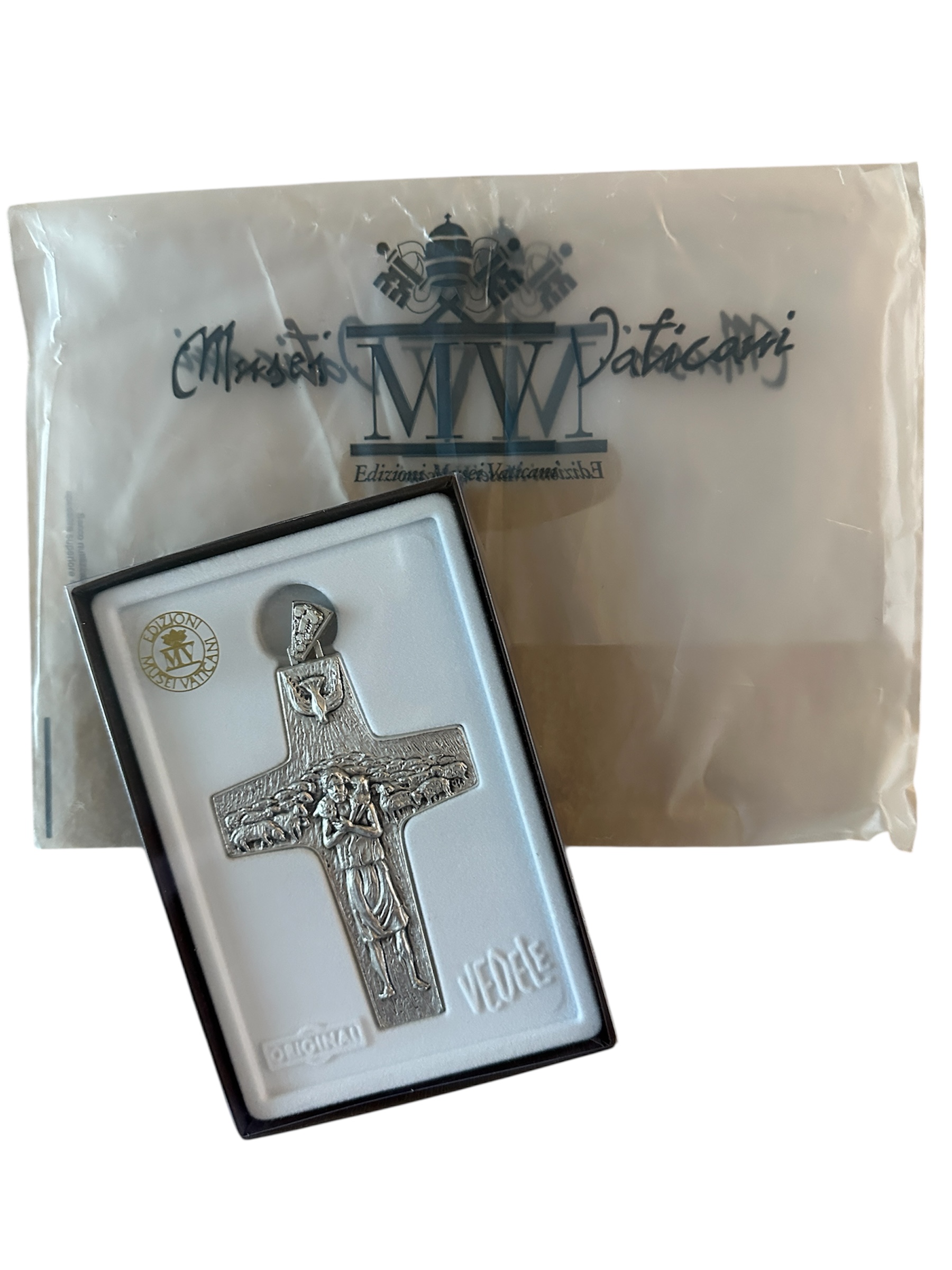 | Vatican Cross – Silver-like metal, Purchased Vatican Museum, Bag Included, Box Sealed & Blessed. This is a replica of Pope Francis’ “Good Shepard” pendant.