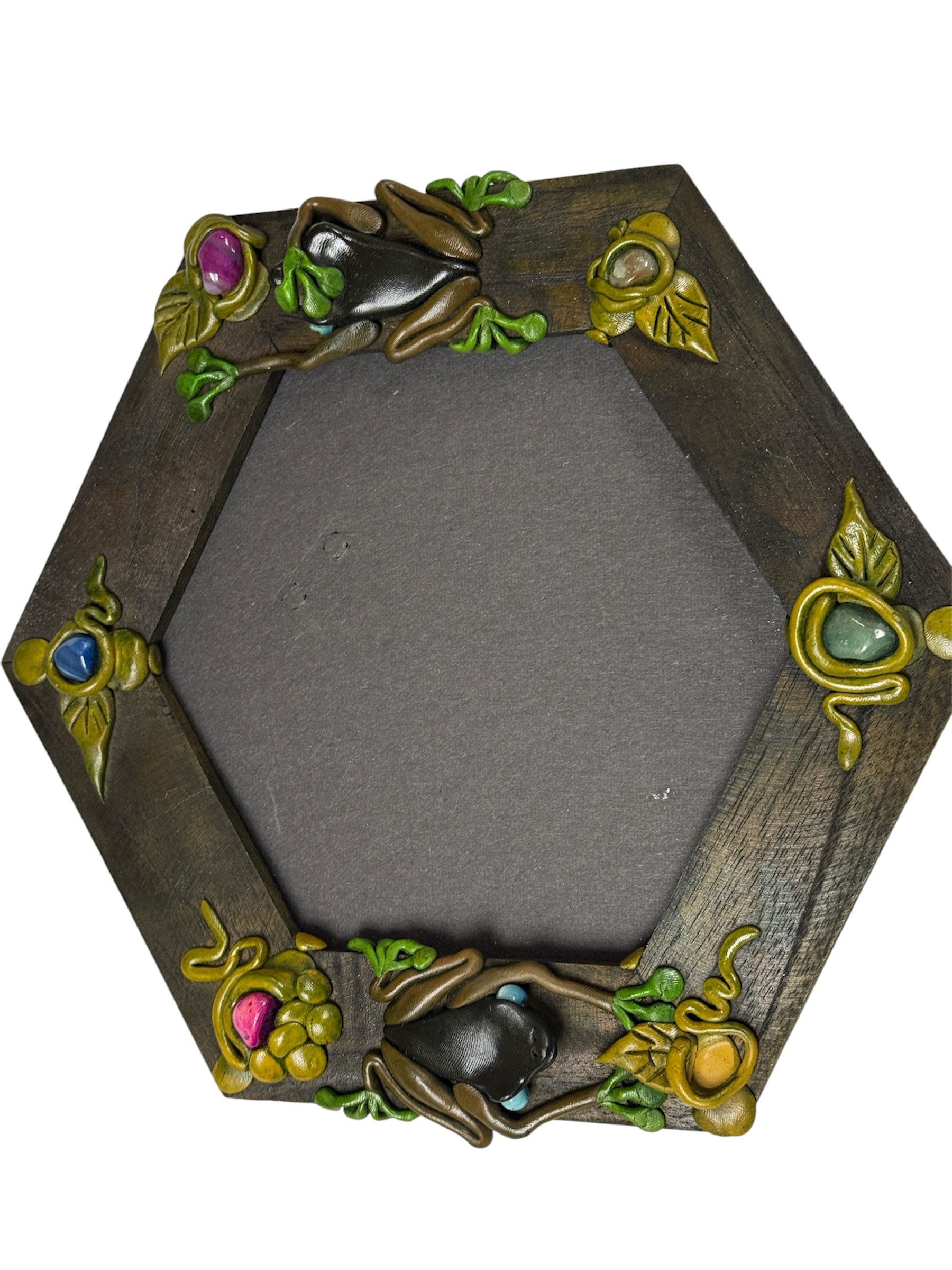 | Whimsical Frog Frame – An elegant whimsical frog frame in a hexagon shape to add interest to any room 91/2″(l)x101/2″(w)