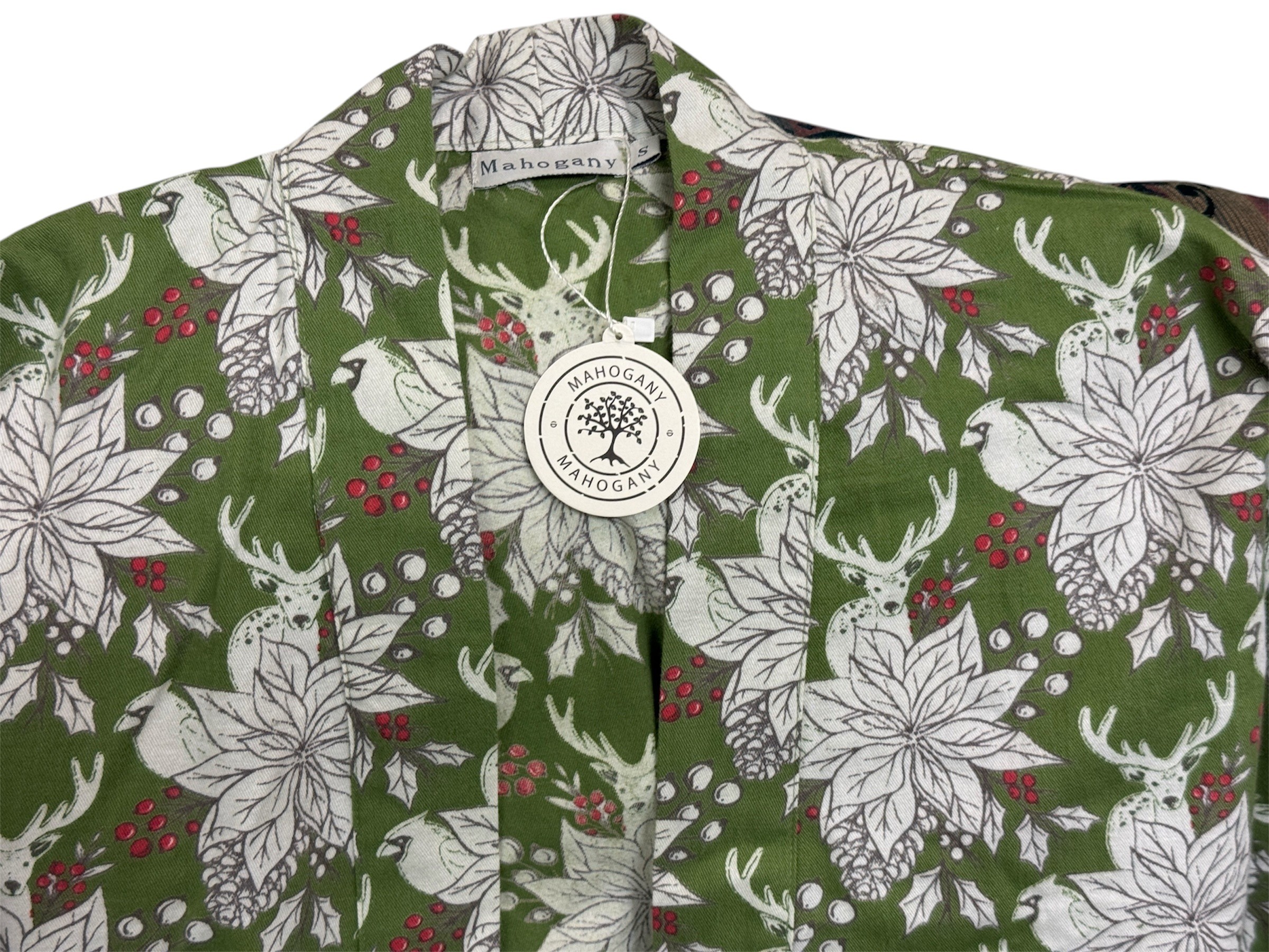 Women’s Flannel Robe – Light flannel “Winter Trails Robe” by Mahogany, size small